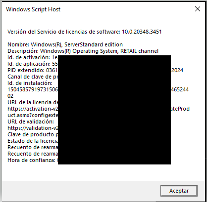Si ahora volvemos a ejecutar slmgr /dlv nos saldrá el siguiente mensaje: